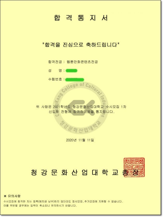 청강대 만화과의 합격작 뿐만이 아니라 다른