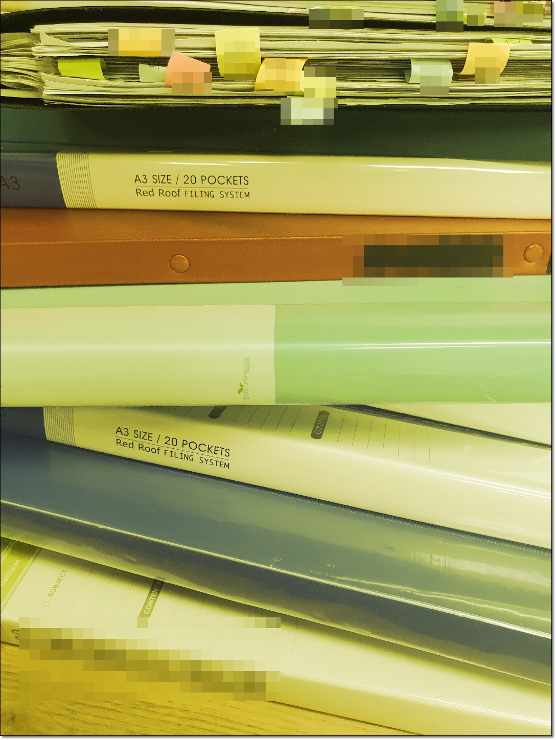 많은 자료들을 모은 파일들을 보면서 입시는 끝이